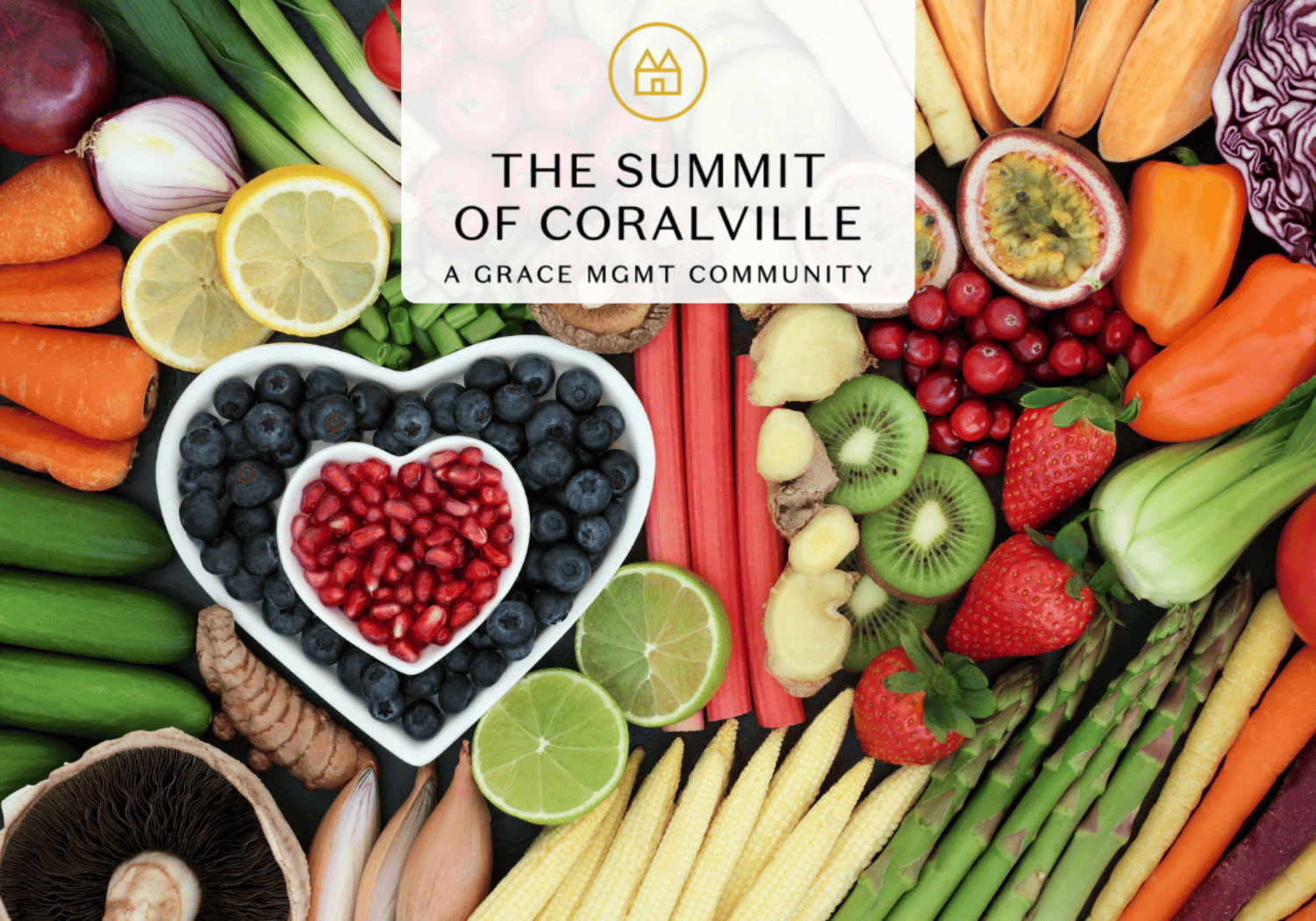 At The Summit of Coralville, our Graceful Dining™ approach offers a homestyle culinary experience in a warm and inviting environment. Whether sharing an intimate meal with a best friend or celebrating a special occasion with all your loved ones, we are certain that living here will satisfy your appetite for connection with others and for the most delicious food.